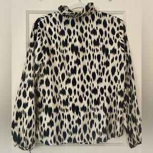 Elizabeth McKay Black and White Silk Leopard Print Blouse, Size 8