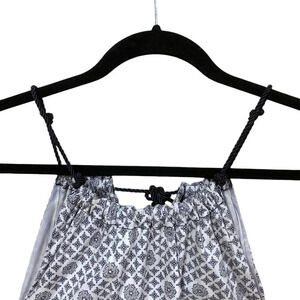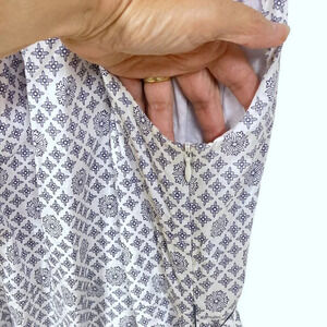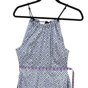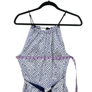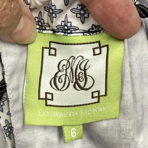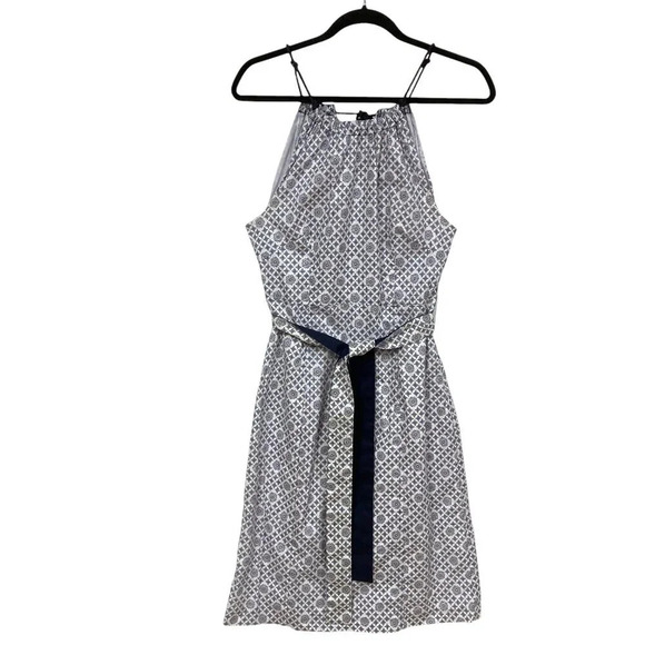 Elizabeth McKay Patterned Dress, Size 6, Navy & White, Fitted, Sash Belt, Midi