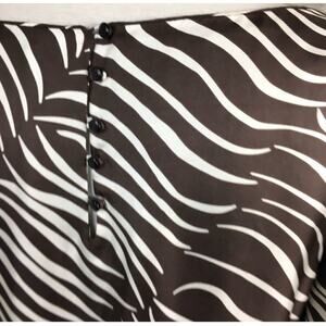 Elizabeth McKay SM 100% Silk Brown White Zebra Lindsay Shift Dress Short Sleeve