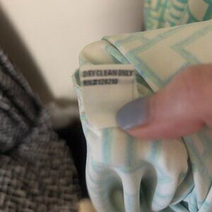 Elizabeth McKay Dress Size S Off-White Blue Green Print Short Sleeve with belt. Excellent used condition. Unlined. Dry Clean Only. Purchased on Rue La La in 2016.