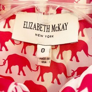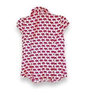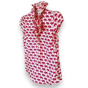 Elizabeth McKay ELIZABETH SHIRT Hot Pink Elephant Print Ruffle Blouse Top Size 0