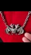 Limited edition necklace by dark surrealist artist Elizabeth Mcgrath. Oxidized, brass tone. Red rhinestone eyes. 20 inch chain.