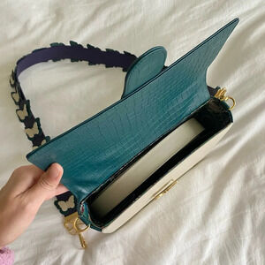 Elizabeth Sutton Leather Bag Multicolor Cream & Forest with 3D Butterfly Strap