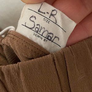 EUC. Beautiful lightweight fabric. Only worn a handful of times as they are too large for me. Bought early 2020; I am the only owner. Gorgeous pants but too long for me, and with weight fluctuation they aren't the fit I'm looking for anymore. Bought right before the pandemic and always intended to get them hemmed, but that became a lower priority during Covid so I never did it and they hardly got any wear. But they would be beautiful sitting at the high waist with a form fitting top (as I intended to wear them) for work or casual. They have been stored in a pet-free, smoke-free home.