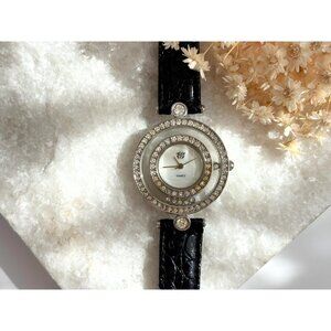 very good vintage condition. Mild signs of wear. Some disoloration on the area where the rhinestones are on the inner most row. Leather has some wear.