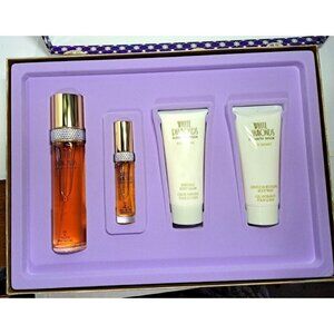 Gift set includes Eau de Toilette Spray, Eau de Parfum Spray, Perfumed Body Cream and Gentle Moisturizing Body Wash.