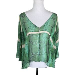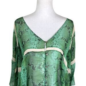 Elizabeth and James 100% Silk Green Snake Print Oversized Sheer Layering Blouse
