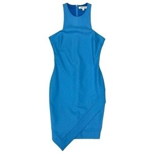 Elizabeth and James Asymmetrical Dress Womens 8 Blue Parrot Rear Zip Date Night