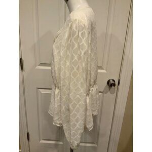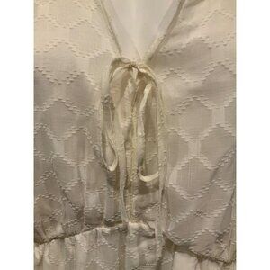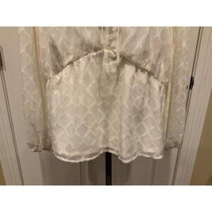 Elizabeth and James Cream Geometric Textured V-Neck Blouse, Size XXL