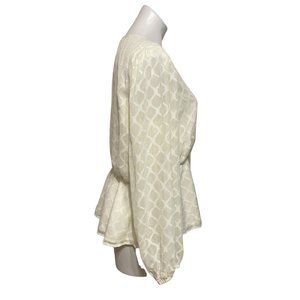 Elizabeth and James Cream V Neck Front Tie Long Sleeve Peplum Blouse