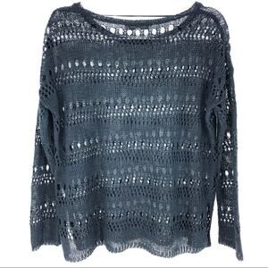 Elizabeth and James Crocheted Loose Knit Crewneck Sweater Navy Size XS