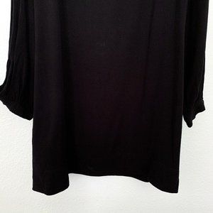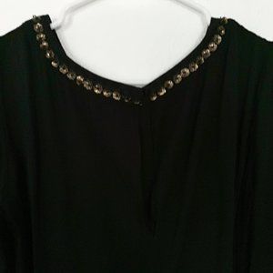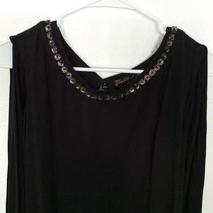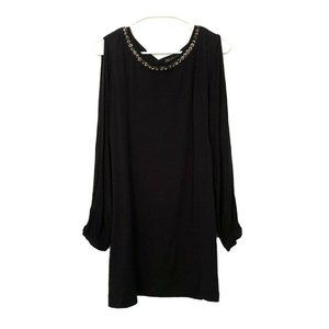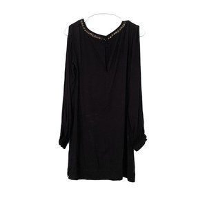 Elizabeth & James Dress Womens Size Small Black Embellished Long Sleeve Shift. Good condition. Keyhole back with button closure. Button closure at bottom sleeve. Small side slits at bottom.
