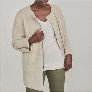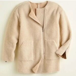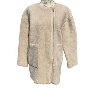 Elizabeth and James Faux Sherling Jacket Coat Zip up Cream Beige Small