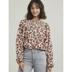 Elizabeth and James Floral Print Bohemian Blouse 100% Cotton Large