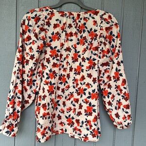 Elizabeth and James Floral Print Women's Top - Red and Cream Small