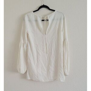 Elizabeth and James Harriet Pleated Long Balloon Sleeve Tie Neck Blouse XS