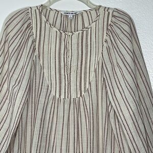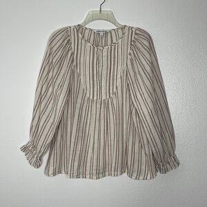 Elizabeth and James Ivory Red Pinstriped Balloon Long Sleeve Cotton Top Small