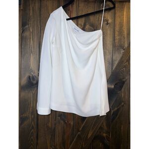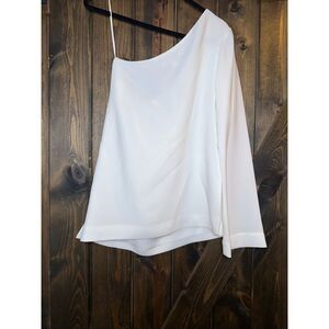 Elizabeth James Layla One Shoulder Blouse Asymmetrical Minimalist Sz M White