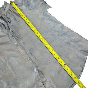 Elegant light blue blouse with tie-neck detail. Features long sleeves and button-down front. Perfect for a chic look.