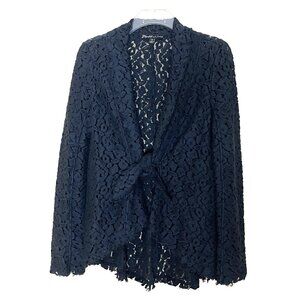 Elizabeth and James Luminista Black Lace Cardigan Jacket Blazer Medium Tie Front