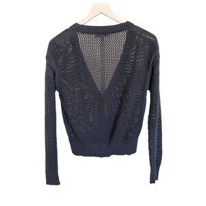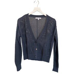 Elizabeth and James Open Knit Navy Blue Button Front Lightweight Sweater Cardiga