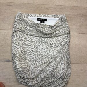 Stylish skirt with a unique pattern in gray and white. Perfect for any occasion.