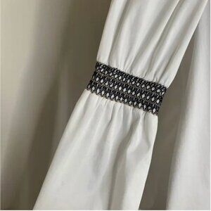 Elizabeth and James Peasant Top Blouse White Embroidered Smocked Sleeve Small