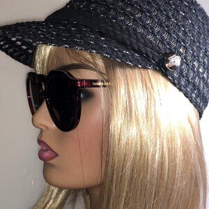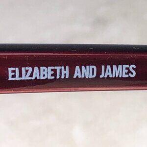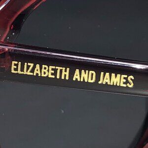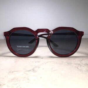 Red, geometric frame Elizabeth and James sunglasses with dark lenses. 100% UV protected.