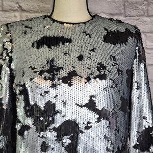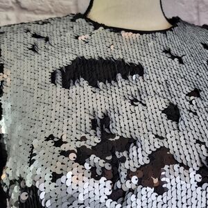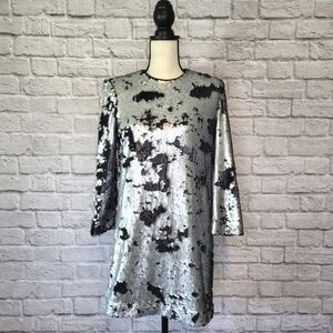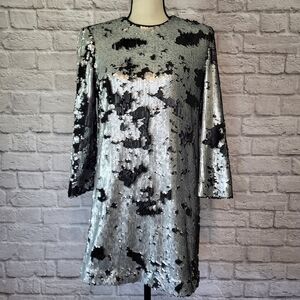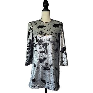 Elizabeth and James x Revolve womens dress in black and silver pewter fish scale sequins. Sequin color switches from black to silver depending on the side is facing up. Size XS. New without tags.