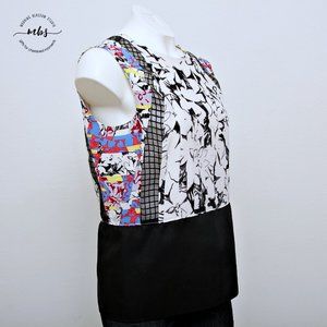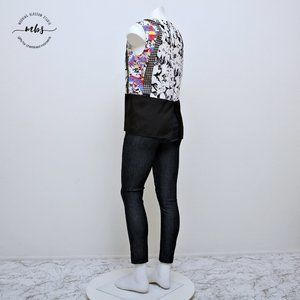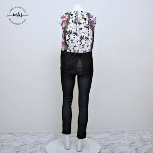 Elizabeth and James Silk Abstract Printed Sheer Side Round Neck Sleeveless Top
