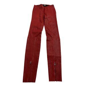 Elizabeth and James Skinny Bottom Zip Up Pants in Red Leather