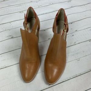 Elizabeth and James Suri cutout leather bootie brown womens size 10stacked block heel and buckle closure. beautiful soft leather upper. some minor marks to leather and some minor wear to sole. please see photos heel height-4