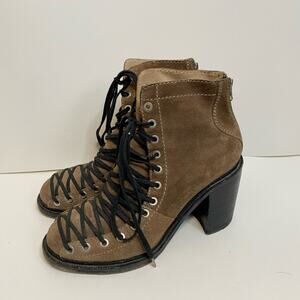 Elizabeth and James Terri Lace Up Boots Heeled Leather Brown Size 9