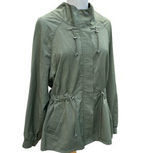 Elizabeth and James Utility Olive Green Cinch Waist Collar Windbreaker Jacket-M