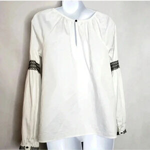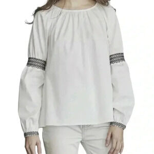 Elizabeth and James White Embroidered Boho Peasant Blouse Long Sleeve Size Small