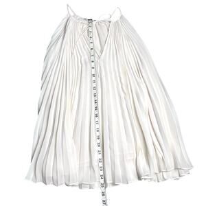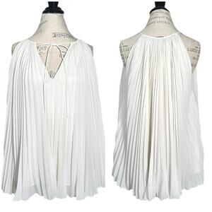 Pre-owned women’s Elizabeth and James Nina white halter neck accordion pleated sleeveless blouse top with a tie neck and under lining. Effortlessly chic and stylish with a Grecian flair.