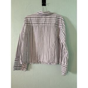 Elizabeth and James Womens Large Wide Cuff Striped Cotton Long Sleeve Shirt