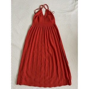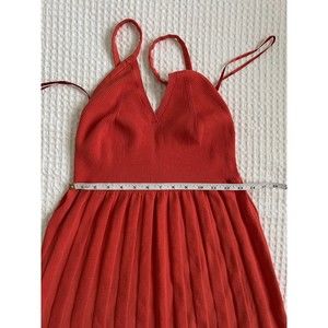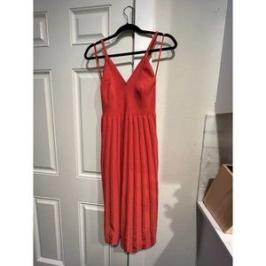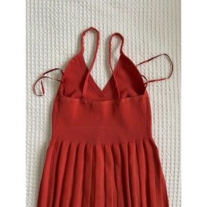 Elizabeth and James Women's Ribbed Pleated Midi Dress in Salmon/Coral Size L