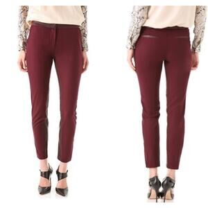 Elizabeth and James Women's Size 2 Maxwell Leather Trim Trousers Red Burgundy