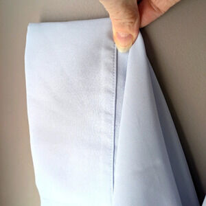 Beautifully finished light blue blouse with three inch cuffs and loose sleeves.