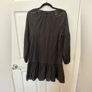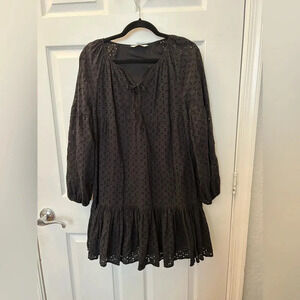 Long sleeve, tie neck, eyelet, cable knit, black, short
