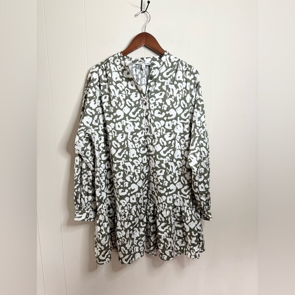 Elizabeth and James sage green and white animal print long sleeve shirt dress SM