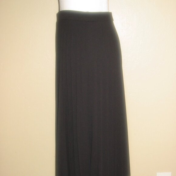 Black polyester/spandex pleated skirt by Elizabeth and Nicole. Brand new. Elastic waist. Measures 28" long. I am happy to answer any questions.