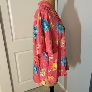 Elizabeth by Liz Claiborne Pink Hawaiian Button Down Short Sleeve Top 18