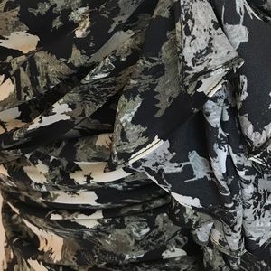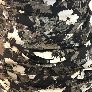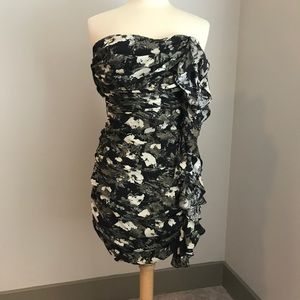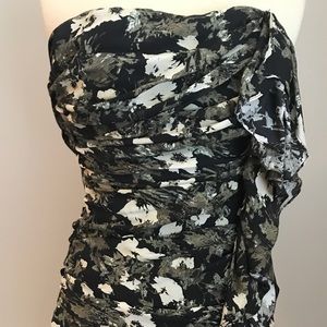 Sexy cameo like printed Elizabeth and James dress in a women's size 6. It has a gathered waist and ruffle accented side. Zipper closure, fully lined, plenty of stretch and hold for a flattering curvy fit. Worn three or four times, in great condition. Retailed for $245.00