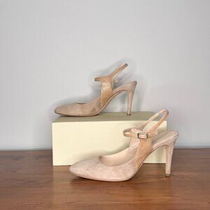 Elizee Italian Handcrafted Suede and Python Print Leather Pointed-Toe Pumps