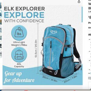 Elk 40L Hiking Backpack, Lightweight Waterproof Daypack With Rain Cover. NEW
