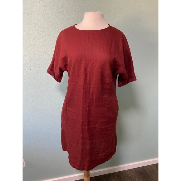 Elk French 100% Linen Midi Shirt Short Sleeves Copper Dress Size 8