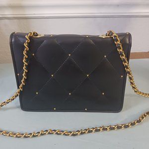 This is beautiful ELKA shoulder bag. Quilted on the outside with gold-colored studs and a gold-colored chain strap. Perfect to wear daily or for an evening out.