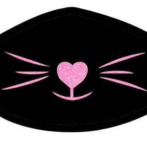 โจ Black mask with pink glitter cat whiskers + heart nose